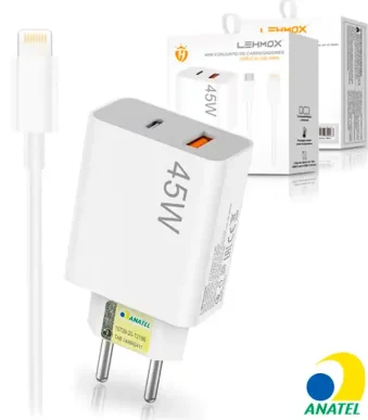 Carregador de Celular Turbo 45W PD USB com Cabo Lightning 1M Lehmox – LE-405 A+IOS