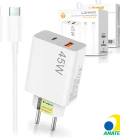 Carregador de Celular Turbo 45W PD USB com Cabo Type-C 1M LEHMOX