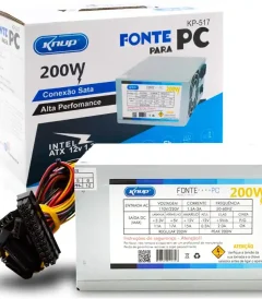 Fonte ATX 200W Sata 24 Pinos Bivolt Manual com Cabo de Alimentação KNUP